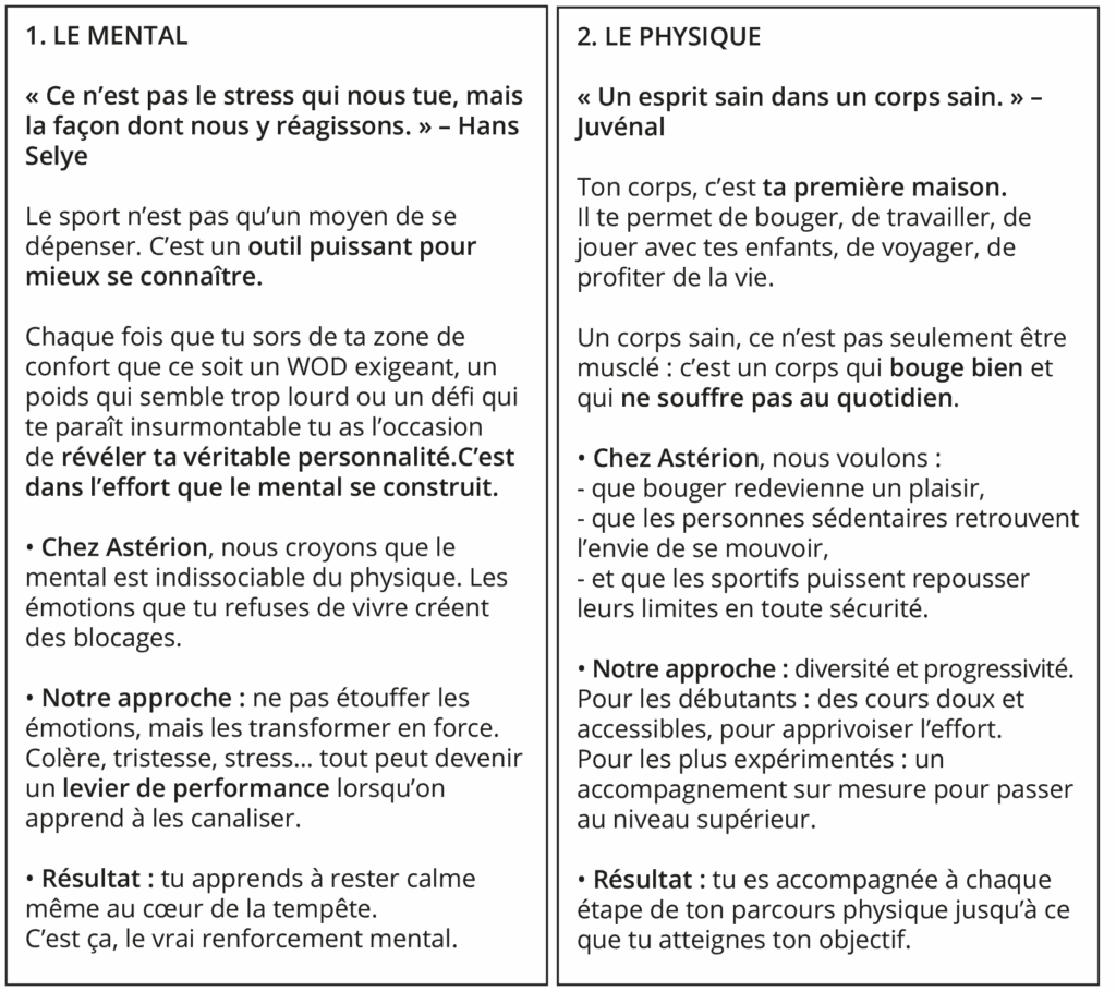 Chez Astérion, l’humain est au centre. Chaque jour, nous mettons notre énergie et notre passion au service de votre santé, pour vous aider à transformer vos rêves et objectifs en réalité. Notre mission : vous donner les moyens de passer à l’action, de progresser et de devenir acteur de votre vie. Ici, vous avez le droit d’essayer, d’échouer et de recommencer, car l’échec n’est pas une fin mais un tremplin vers la réussite. Celui qui ose finit toujours par gagner. Astérion est votre safe place : un espace bienveillant, positif et inspirant, où chacun est tiré vers le haut.